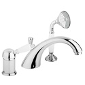 Назначение: ванна+душ • Конструкция: однорычажный • Монтаж: горизонтальный • Клапан: керамический • Материал: латунь, покрытие - хром • Монтажные отверстия: 3 отверстия • Форма излива: традиционная • Душевая лейка в комплекте: есть • Донный клапан в комплекте: есть